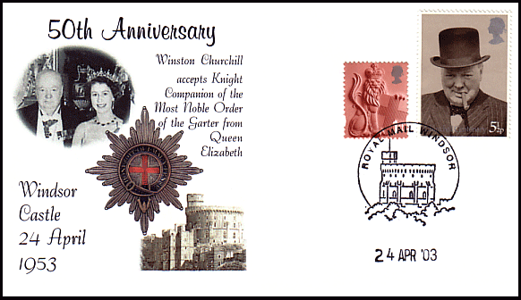 Queen Elizabeth 50th anniversary, 24 April 2003, Windsor postmark. |