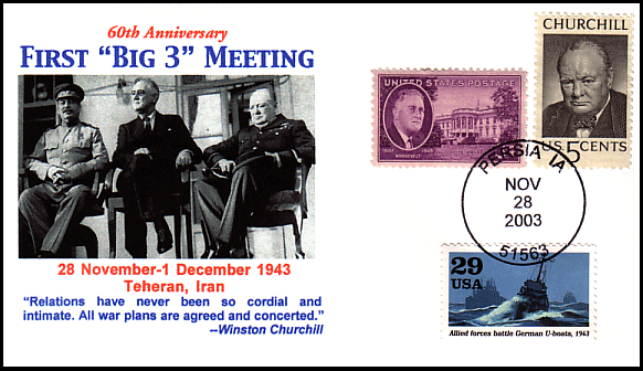 Teheran 60th anniversary, 28 November 2003, Persia, IA postmark. Cover