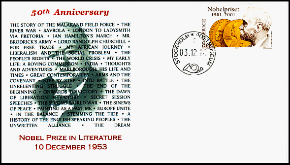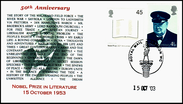 Prize in Literature 50th anniversary, 15 October 2003, London postmark.