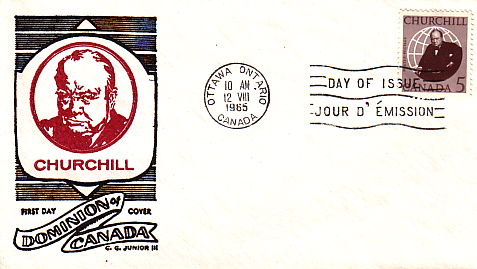 C.G. Junior III cachets were produced, not surprisingly, by Charles George, Jr., son of cachetmaker Charles George. George, Jr. also produced a similar cachet for the Canadian Churchill memorial issue of August 1965. |