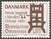 1982. 500th anniversary of printing in Denmark. An early hand-press for letterpress printing, Odense (Island of Funen), 1482.