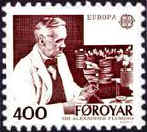 1983. Europa Stamps. Famous Persons. To the left the Danish scientist Niels Ryberg Finsen, (1860-1904) who invented chemo-therapy against cancer, and was awarded the Nobel Prize in 1903. To the right the scientist Alexander Fleming, who found the penicillin.