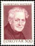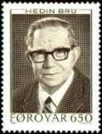 From left Jørgen-Frantz Jacobsen (1900-1938), Christian Matras (1900-1991), William Heinesen (1900-1991), and Hedin Bru (1901-1987). Please note that at the date of issuance the writer Wiliam Heinesen had not yet passed away, so he is one of the few persons of the world that has been featured on a stamp while he was still alive, except for - of course - kings, queens and presidents of any country.