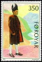 1989. Faeroese festival dresses used at weddings. Man's dress from Sjostuka. Woman's dress from Stakkur.