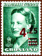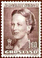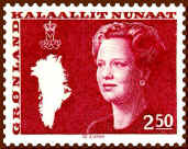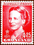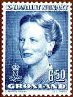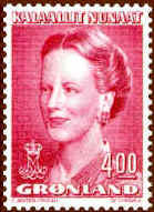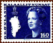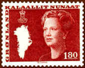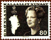 At the occasion of the Queen's 40th birthday in 1980, Greenland introduced a new large definitive series, now showing the Queen at the age of 40. To the left of her portrait is a map of Greenland and above the map her crowned monogram. The series is issued during the period 1980-1987.