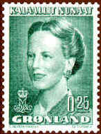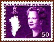 Until 1978 this was written in the old fashioned way as "Kalâtdlit Nunât", but on stamps issued on and after 17th April 1978 the spelling changed to the modern version "Kalaallit Nunaat". Below are shown all "royal" stamp issues of Greenland, engraved by Czeslaw Slania.
