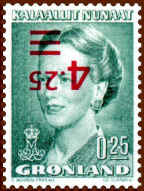 Until 1969 Greenlandic stamps carried the country's name only in Danish. Stamps issued on and after 11th March 1969 all carry the country's name in two languages, Greenlandic and Danish. The local name of the country is Kalaallit Nunaat, literally meaning "The Land of Man".