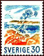 1967. Definitive stamp of 30 øre. Outer Archipelago in Stockholm. Angelica Plant.