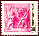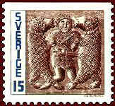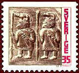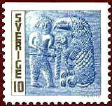 1967. The Iron Age, Öland, around 500 A.D. (Please note that the 4th stamp in the set is slightly smaller than the other three). The main subject of the stamps are helmet crests in bronze, found at Torslunda, Öland.